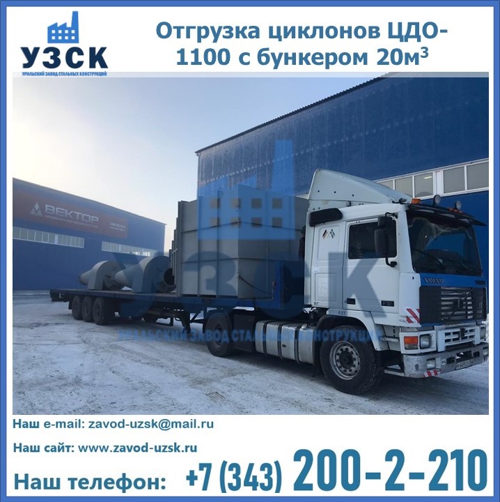 Циклоны ЦДО-1100 с бункером на 20 кубов были отгружены в декабре 2018 года в г. Новосибирск Кара-Балта.