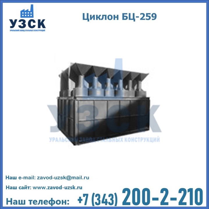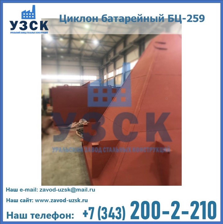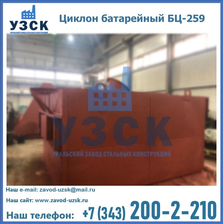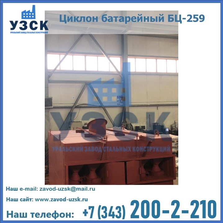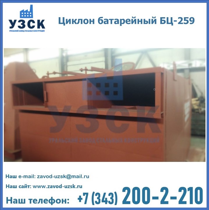 Приобрести качественное оборудование, в том числе, циклоны БЦ-259, можно в компании УЗСК в Кара-Балта. Мы предлагаем долговечную и надежную продукцию по приемлемой цене. Заказать и купить циклоны или другие изделия высокого качества можно через сайт Уральского Завода Стальных Конструкций, или позвонив по указанному в разделе «Контакты» телефону.