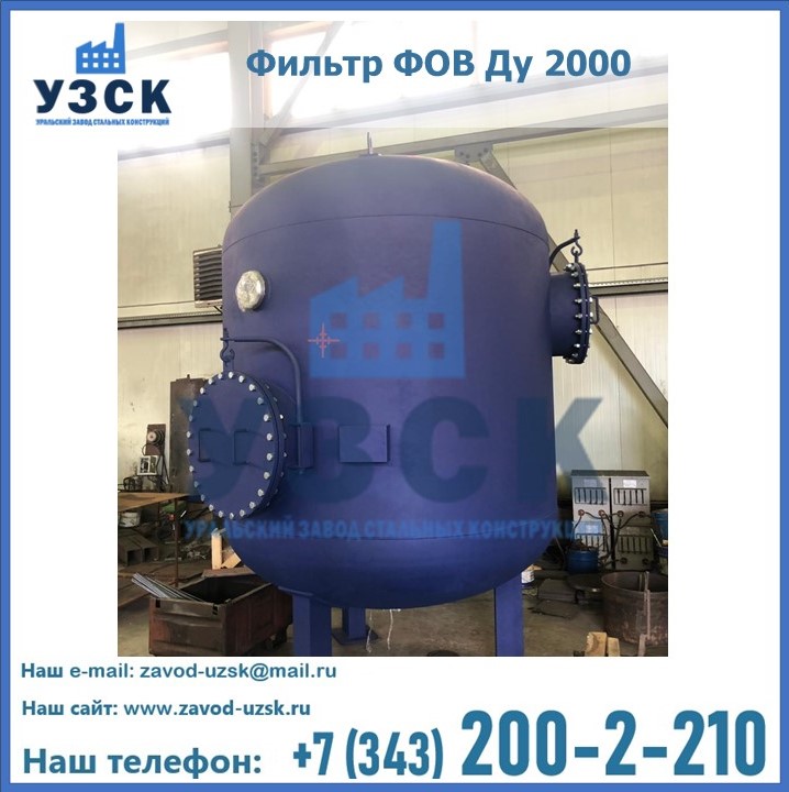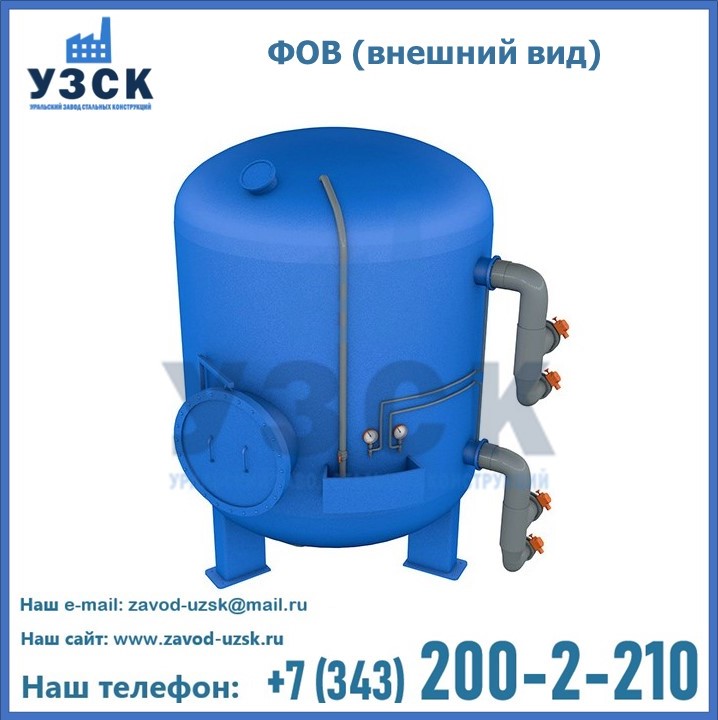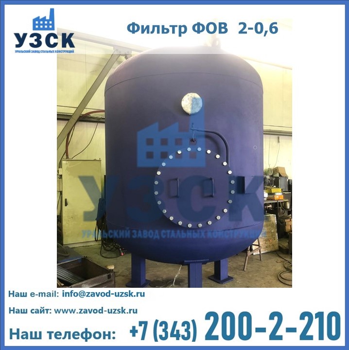 Удаление взвешенных веществ различного уровня дисперсности из рабочих жидкостей эффективно проводит фильтр осветлительный типа ФОВ (скорый или механический) — вертикально-цилиндрической формы установка, разработанная для систем водоподготовки различного класса. Оборудование представляет собой однокамерный агрегат для очистки воды рекомендованный для применения на станциях очистки стоков, в коммунальных котельных, на ТЭЦ, в промышленных отопительных системах и пр. Заказать производство ФОВ фильтров предлагает наш Уральский завод стальных конструкций в Кара-Балта. У нас можно купить фильтрационное оборудование различного класса и типа, в том числе фильтры ФОВ из нержавеющей стали.