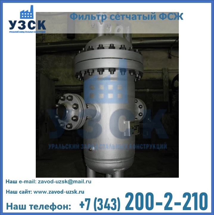 Очистку перекачиваемых жидкостей на предприятиях нефтяной, пищевой, горнорудной, фармацевтической и других отраслей промышленности эффективно выполнять с помощью жидкостного сетчатого фильтра — емкостное оборудование цилиндрической формы со съемной крышкой и элементом фильтрации внутри. Оснащенные им всасывающие линии насосных станций и установок защищены от проникновения твердых частиц в функциональные узлы гидравлической системы. Оборудование служит для перекачивания токсичных, агрессивных и иных эмульсий, суспензий, жидкостей. Купить фильтр сетчатый жидкостный ФСЖ в Кара-Балта с гарантией производителя предлагает «Уральский завод стальных конструкций». Мы выполняем проектирование и изготовление ФСЖ по индивидуальным требованиям (климатическая зона, транспортируемая жидкость).