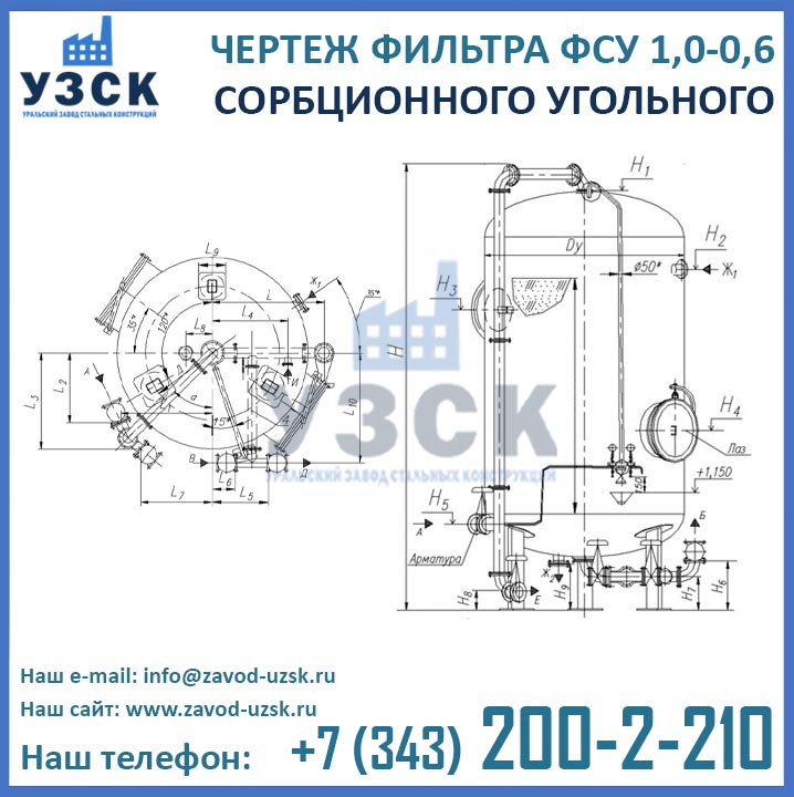Наш завод (Уральский завод стальных конструкций) является производителем угольных фильтров, сам осуществляет изготовление и реализацию выпускаемой продукции. Приобретая фильтры ФСУ-1.0-0.6 в Кара-Балта от производителя, Вы приобретаете оборудование без наценок всевозможных посредников, а также значительно экономите свое время. Фильтры ФСУ1.0-0.6 завода УЗСК – это гарантия качества, кратчайшие сроки изготовления и цена, которая Вам понравится.