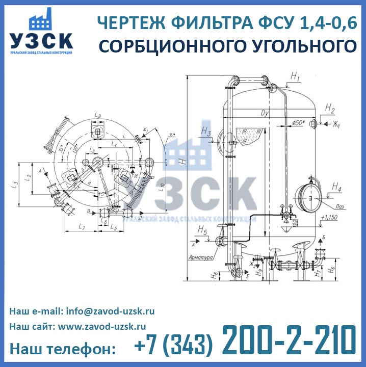 Если вы ищете фильтры ФСУ-1,4-0,6 в Кара-Балта от изготовителя, то Вы на правильном пути! Уральский завод стальных конструкций – непосредственный производитель сорбционных фильтров ФСУ, предлагающий самые выгодные цены на ФСУ-1.4-0.6 в Кара-Балта. По окончании процесса производства угольные фильтры проходят гидравлические испытания пробным давлением 0,9 МПа на аттестованном гидростенде, находящимся в собственности завода УЗСК. Мы гарантируем высокое качество выпускаемой продукции, и в этом уже убедились ведущие предприятия промышленного сектора России и стран ЕАЭС (см. раздел «Наши клиенты»).