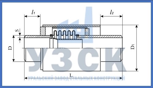 К сильфону с двух сторон приварены нахлестом патрубки из Ст20, 09Г2С и других марок, в зависимости от температурных условий. Внутри есть гильза, по сечению равная трубе, чтобы не создавать перепада и сопротивления. Внешняя окожушка шире основной трубы. Фланцы изделия разделаны под сварку встык.