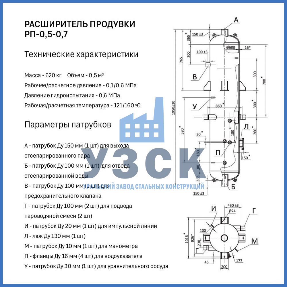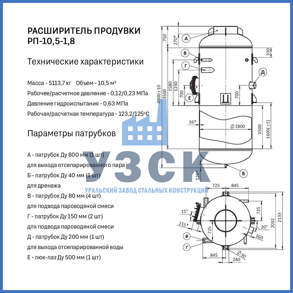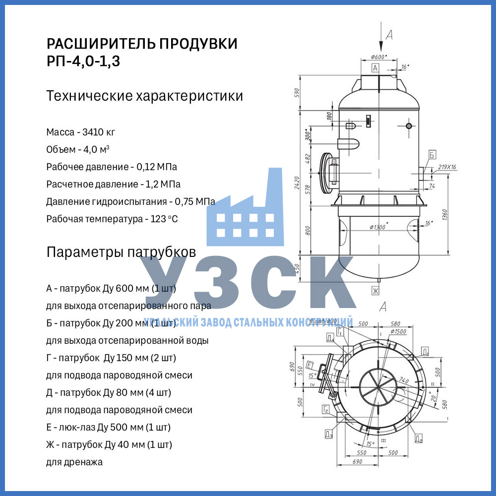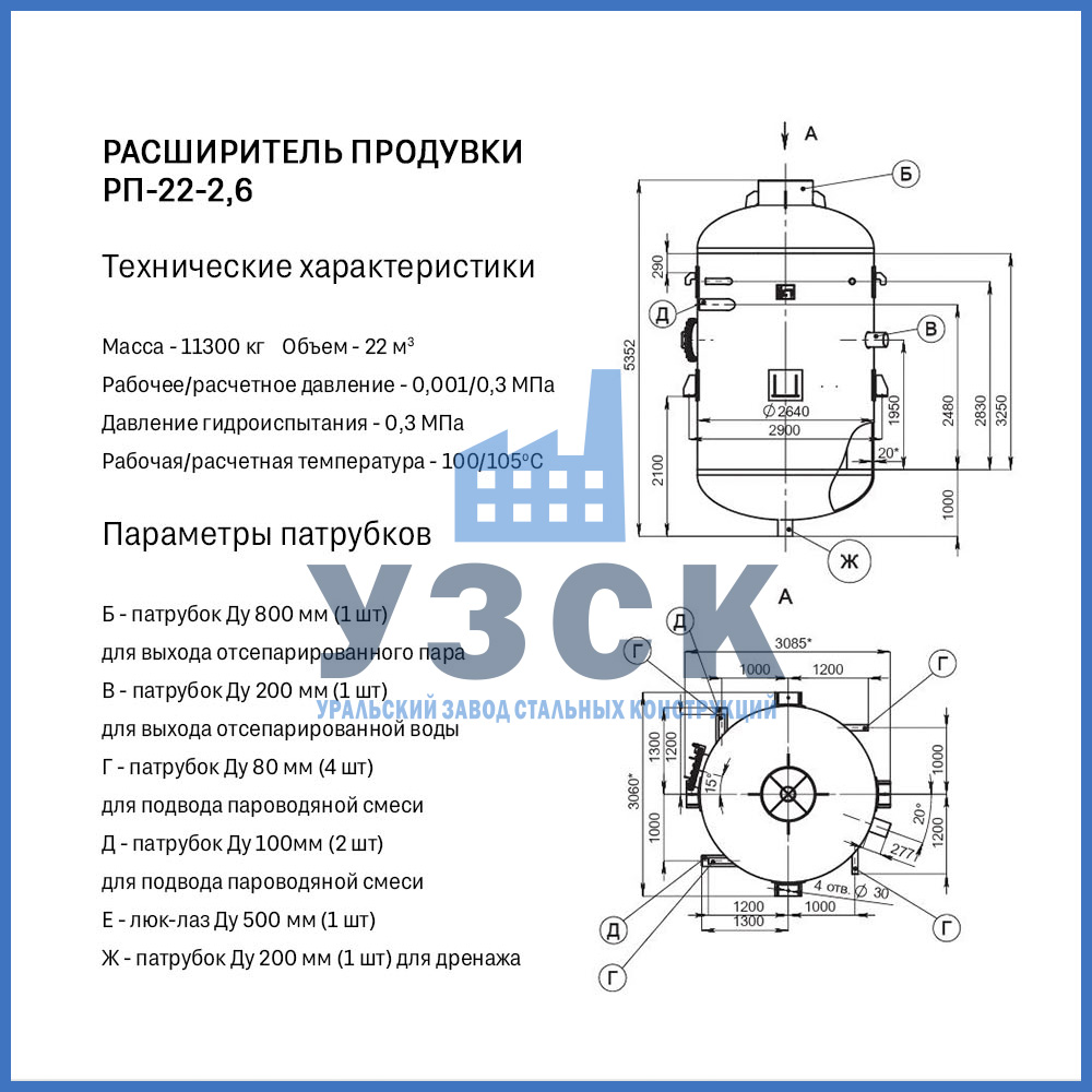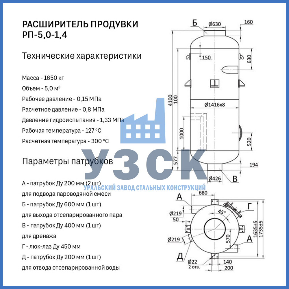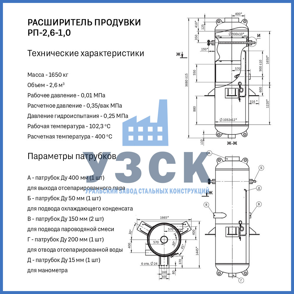 Главная > Продукция > Емкости > Расширитель продувки РП (РНП, РПП) в Кара-Балта