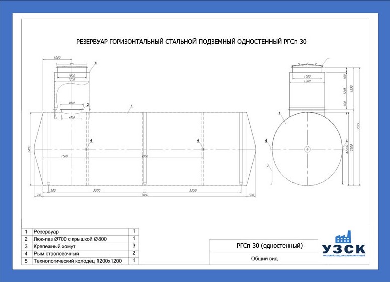 РГСп-30: горизонтальный резервуар одностенный подземного расположения;