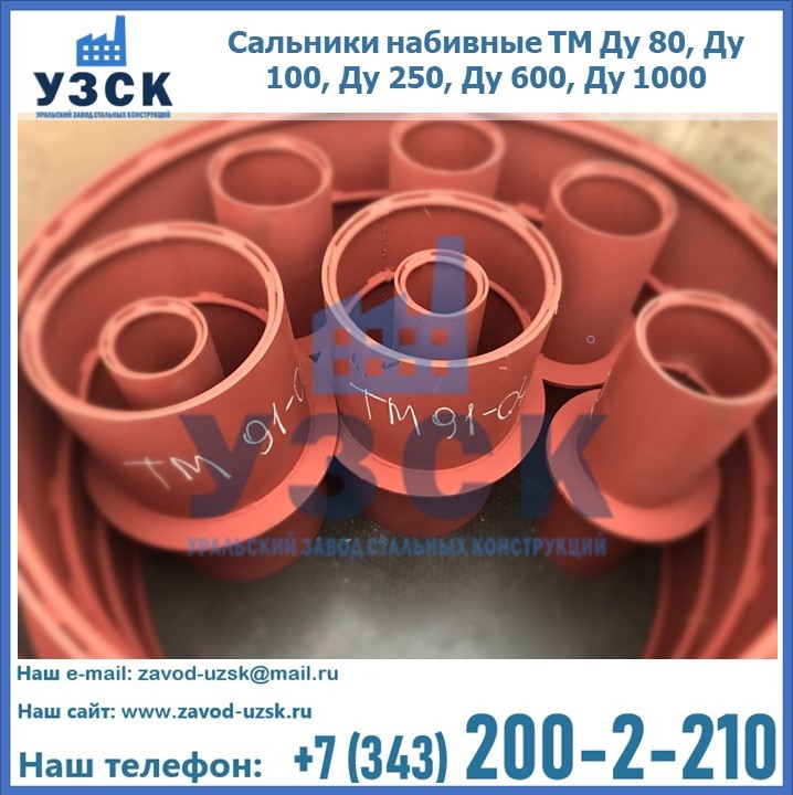 На производственных площадях Уральского Завода Стальных Конструкций в Кара-Балта профессиональные сотрудники занимаются проектированием и разработкой различных закладных деталей, в частности осуществляется производство и реализация набивных и нажимных сальников. Все изделия, которые можно приобрести у нас, отвечают установленным требованиям по ГОСТу, а также прочей нормативной документации.